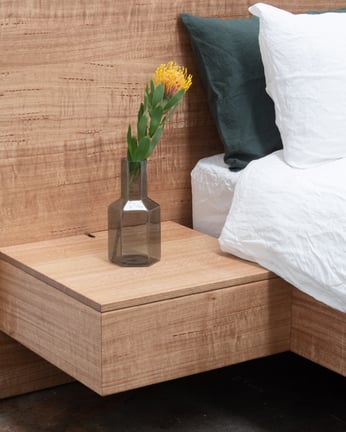 FLOATING BED WITH SOFT CLOSE DRAWERS IN TASMANIAN OAK